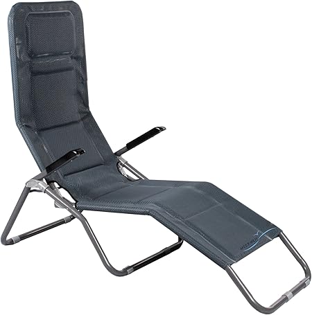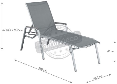 Bain De Soleil Sunset Aluminium Et Textilene Gris 4 Positions Wilsa . 94 X 62 X 102 Cm.