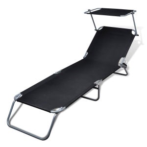 Pare Soleil Pour Chaise Longue , Chaise Longue À Bascule Bain De Soleil Transat 77 X 85X 173Cm Pvc Résistant Noir.