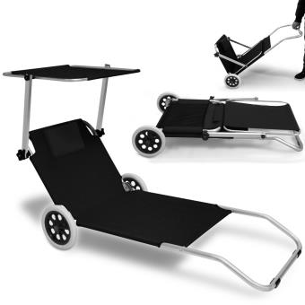 Transat Lit De Plage Chaise Longue Avec Pare Soleil Amovible Et Matelas Design Bea Noir - Mobiler De Terrasse Pour Les Professionnels :