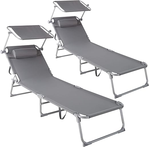 Transat Italien Avec Pare Soleil . Chaise Longue, Transat, Bain De Soleil, Pare Soleil, Pliable Aluminium 190 Cm Tectake X 1.