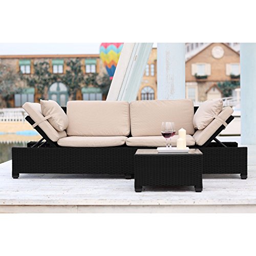 Bari Bain De Soleil Type Transat En Resine Tressee Noir Avec Coussins Beiges Transat Fauteuil Et Hamac Mobilier De Jardin Jardin Et Plein Air Gifi - Braid, Гайтан, Златна Мрежа, Много Чести (≥1/10).